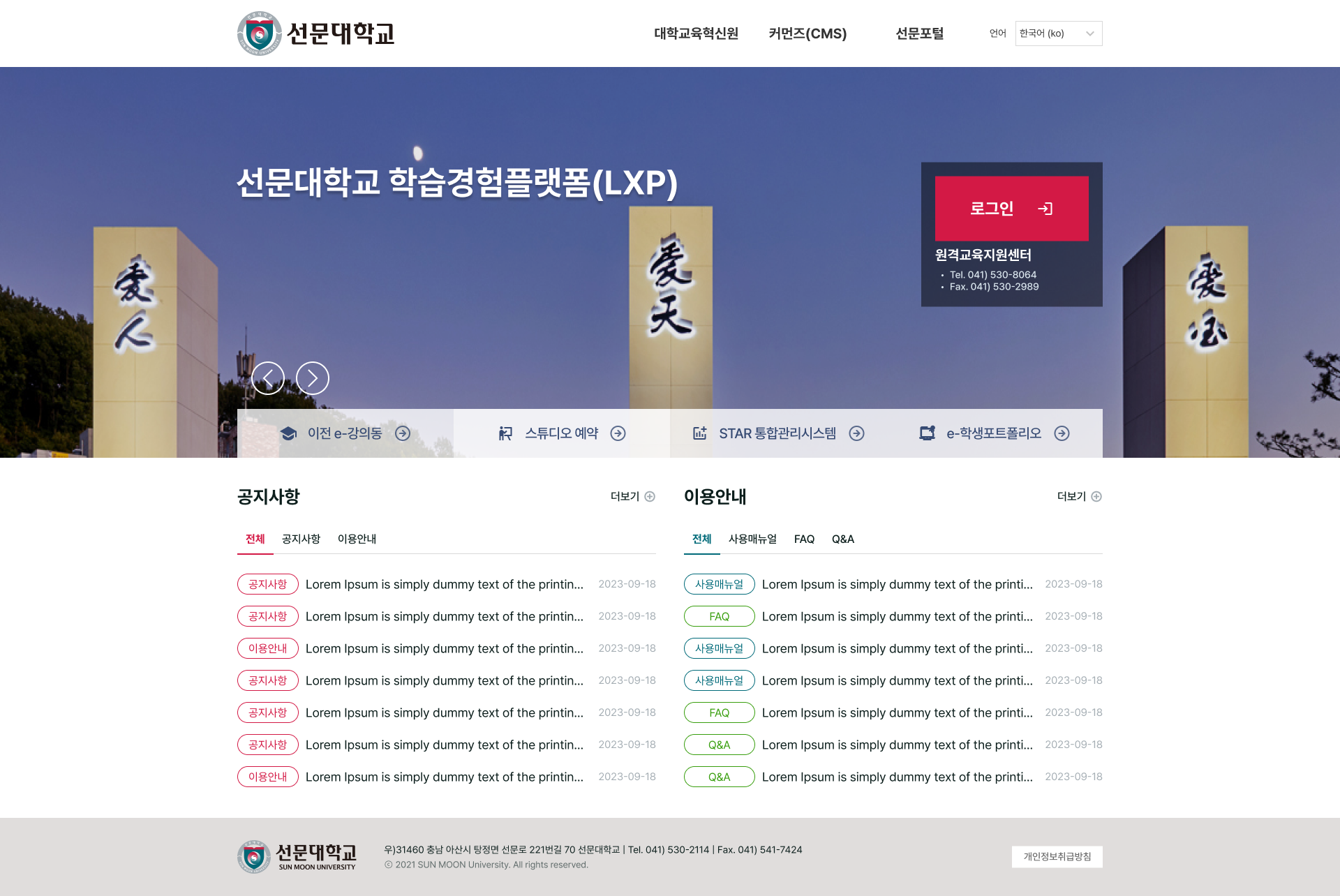 ■ 현재 e-강의동(LMS) 홈페이지는 새롭게 단장하였음(접속 가능)